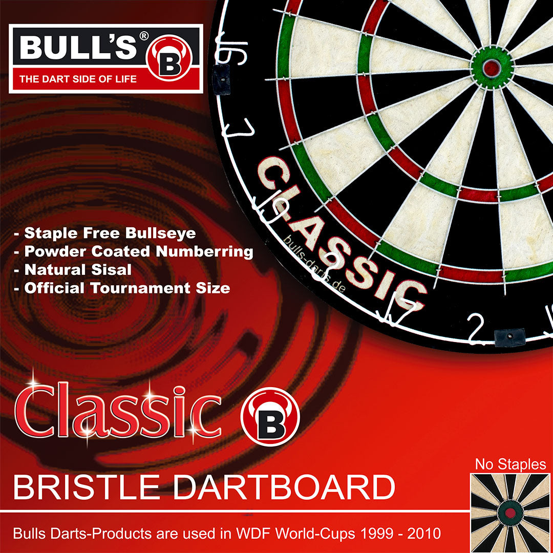 Bristle Dartboard aus hochwertigem Sisal in der offiziellen Turnierabmessung ca. 45 x 4 cm, mit aufgesetztem runden Spider. Eine Nutzungsanleitung und eine Boardwandhalterung werden mitgeliefert. |