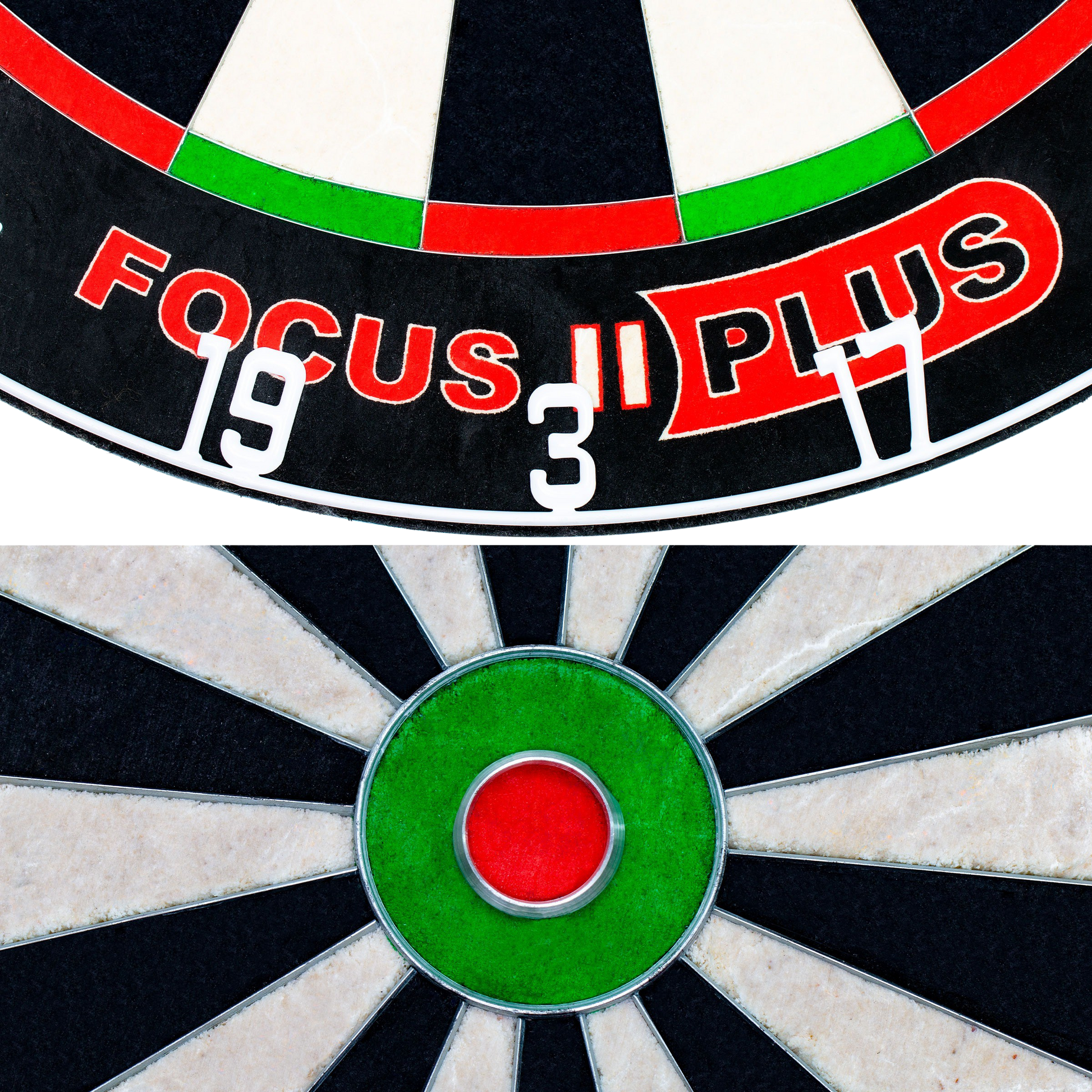 Das Focus II Plus ist der Beginn einer neuen Dartboard Ära. Dieses Board ist das beste BULL'S Dartboard aller Zeiten. Seit über 30 Jahren steht BULL'S für Innovation und Qualität und findet hiermit seinen vorläufigen Höhepunkt. Akribisch wurden alle Komponenten des Focus II Plus geplant, entworfen und miteinander zu diesem einzigartigen Dartboard verschmolzen. High End Dartboard-Technologie in einem umwerfenden Design. Das Herzstück ist das herausragende afrikanische Sisal. Langlebig und höchsten Ansprüchen gewachsen. Die neuartiger Sisalverarbeitung kreiert ein erstaunlich kontrastreiches und hochwertiges Trefferfeld. Diese neue Sisalverarbeitung erleichtert ebenfalls das Eindringen der Darts in das Board und stabilisiert den Dart im Board. Dieses Verfahren ermöglicht ein sehr tiefes einlassen des Spiders im Sisal, Bouncer (Abpraller) werden damit nahezu ausgeschlossen. Durch das tief eingelassene, extra dünne Spider wird die Trefferfläche optimiert, dieses wird vor allem im Bereich des BULL'S Eyes im Vergleich zu herkömmlichen Dartboards deutlich. Das angewandte Spider-Leg-Free-Verfahren ermöglicht es, dass keine Metallhalterungen rund um das Trefferfeld zu sehen sind. Der Gesamteindruck des Dartboards wird dadurch erheblich gesteigert. Der scharfe High-Quality-Aufdruck sowie die modernen Metallnummern vollenden den herausragenden Gesamteindruck des Focus II Plus. Die Metallnummern befinden sich an einem drehbaren und pulverbeschichteten Nummernring, Reflexionen werden dadurch vermieden. Das Focus II Plus besitzt exakte Turniermaße (45,5 x 3,8 cm) und entspricht damit internationalen Turnierregularien. Eine Nutzungsanleitung und eine Boardwandhalterung werden mitgeliefert. |