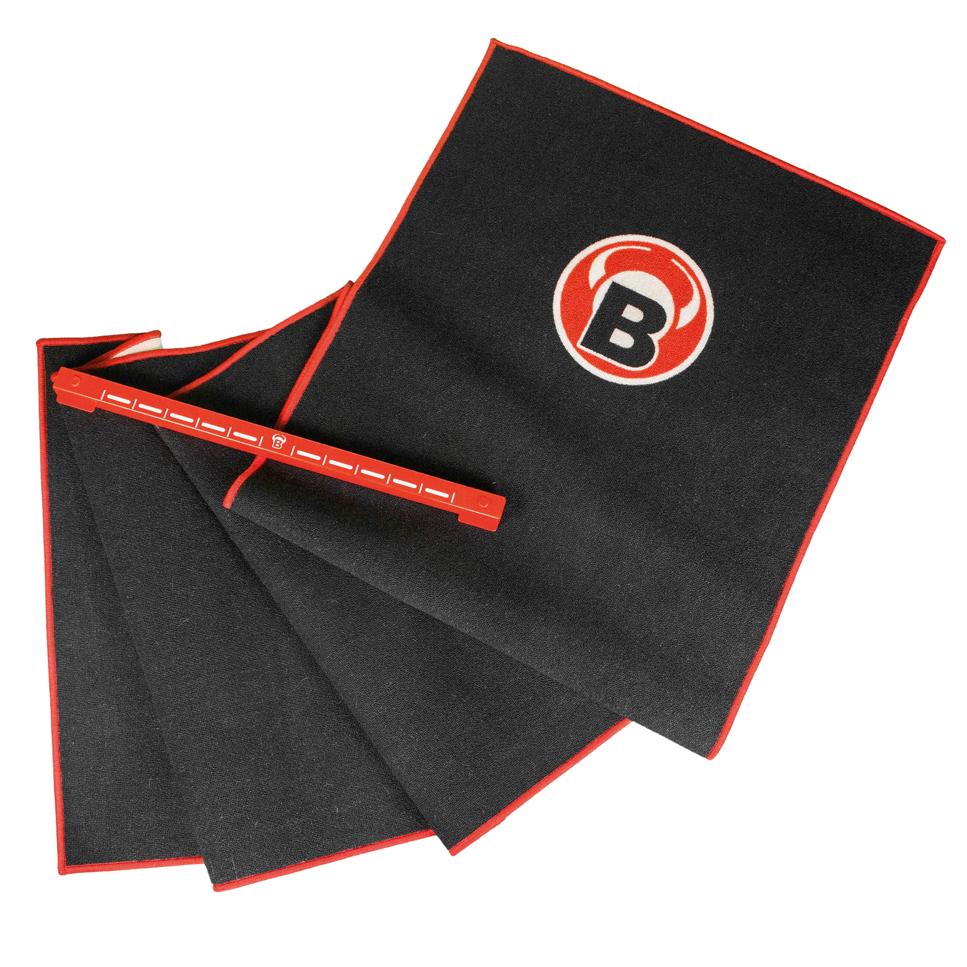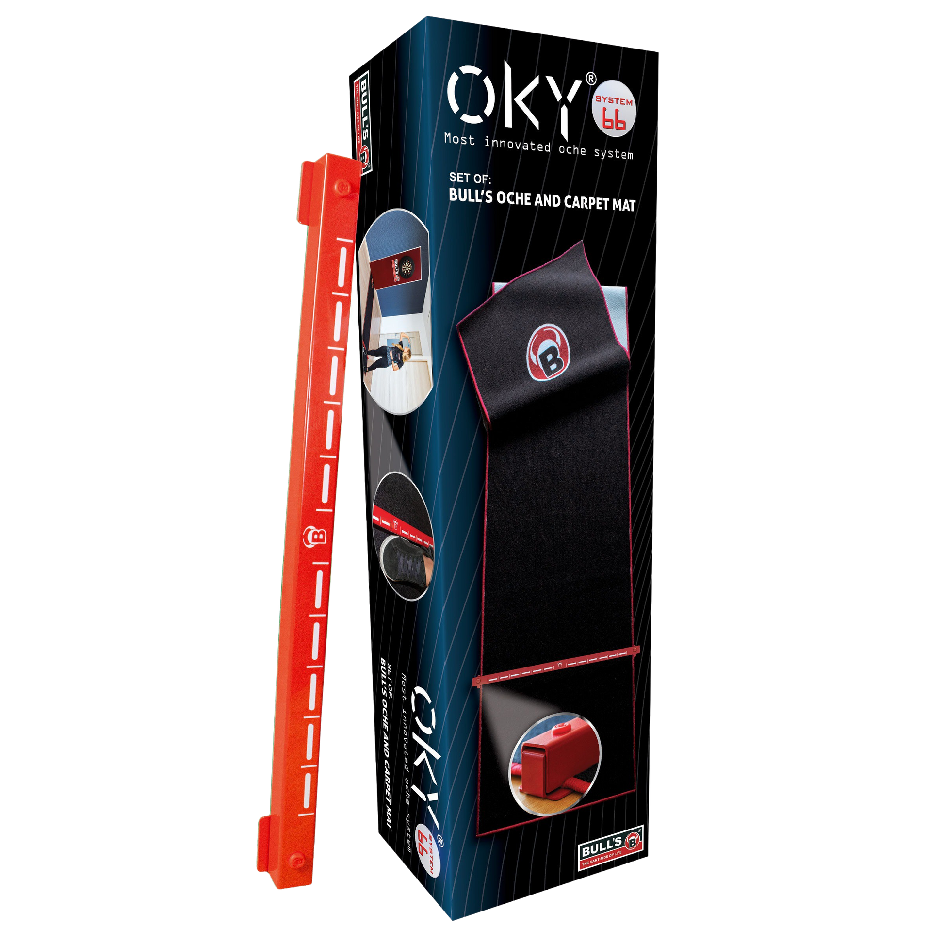 Das BULL'S Oky System ist das innovative Oche System von BULL'S. In diesem Set befindet sich neben dem Oky System auch die begehrte Carpet Mat von BULL'S in einer Länge von 280 cm und einer Stärke von 3 mm. Das Set ist in den Teppichbreiten 66 cm und 80 cm verfügbar. Das geschützte Oky ist so einfach, und doch so genial. Das Anbringen des Oche ist einfacher und die Stabilität höher als je zuvor. Der hochwertige Stahl des Oky garantiert eine lange Haltbarkeit auch bei intensiver Benutzung. Das Design der Oberseite des Oky hilft immer den identischen Standpunkt am Oky zu finden. Das Oky ist flexibel einstellbar, und kann mit wenigen Handgriffen an Dartmatten angebracht werden, ohne diese zu beschädigen oder zu verrutschen. Es ist verwendbar für alle Gummimatten, Dartteppiche und Hartmatten mit einer Stärke bis zu 15 mm. Im Lieferumfang enthalten sind zu sätzlich zwei BULL'S Abdeckkappen für die Schrauben, sowie zwei Filzgleiter zum Schutz des Bodens. |