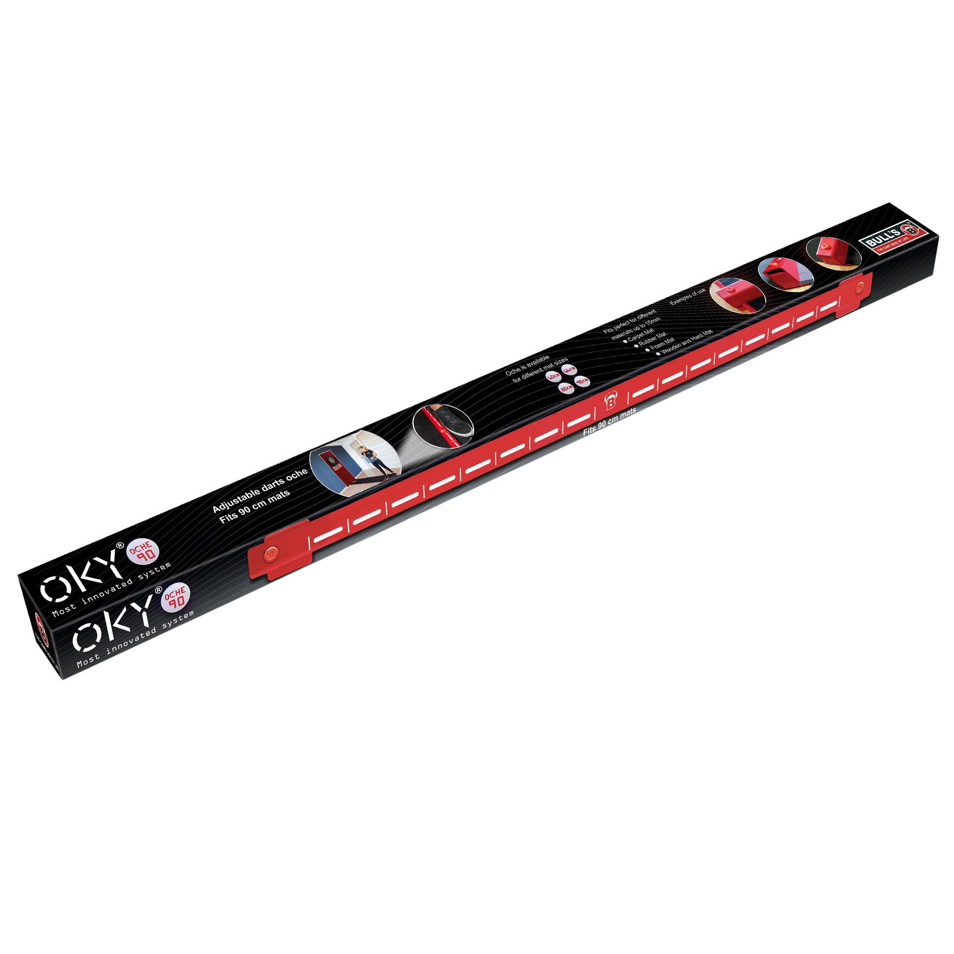 Das BULL'S Oky System ist das innovative Oche System von BULL'S. Das geschützte Oky ist so einfach und doch so genial. Das Anbringen des Oche ist einfacher und die Stabilität höher als je zuvor. Der hochwertige Stahl des Oky garantiert eine lange Haltbarkeit auch bei intensiver Benutzung. Das Design der Oberseite des Oky hilft immer den identischen Standpunkt am Oky zu finden. Das Oky ist flexibel einstellbar und kann mit wenigen Handgriffen an Dartmatten angebracht werden, ohne diese zu beschädigen oder zu verrutschen. Das Oky gibt es in den Längen 60 cm, 66 cm, 80 cm und 90 cm gemäß den gängigen Dartmattenbreiten. Es ist verwendbar für alle Gummimatten, Dartteppiche und Hartmatten mit einer Stärke bis zu 15 mm. Auch erhältlich als Set mit der beliebten BULL'S Carpet Mat. Im Lieferumfang enthalten sind zusätzlich zwei BULL'S Abdeckkappen für die Schrauben, sowie zwei Filzgleiter zum Schutz des Bodens. |