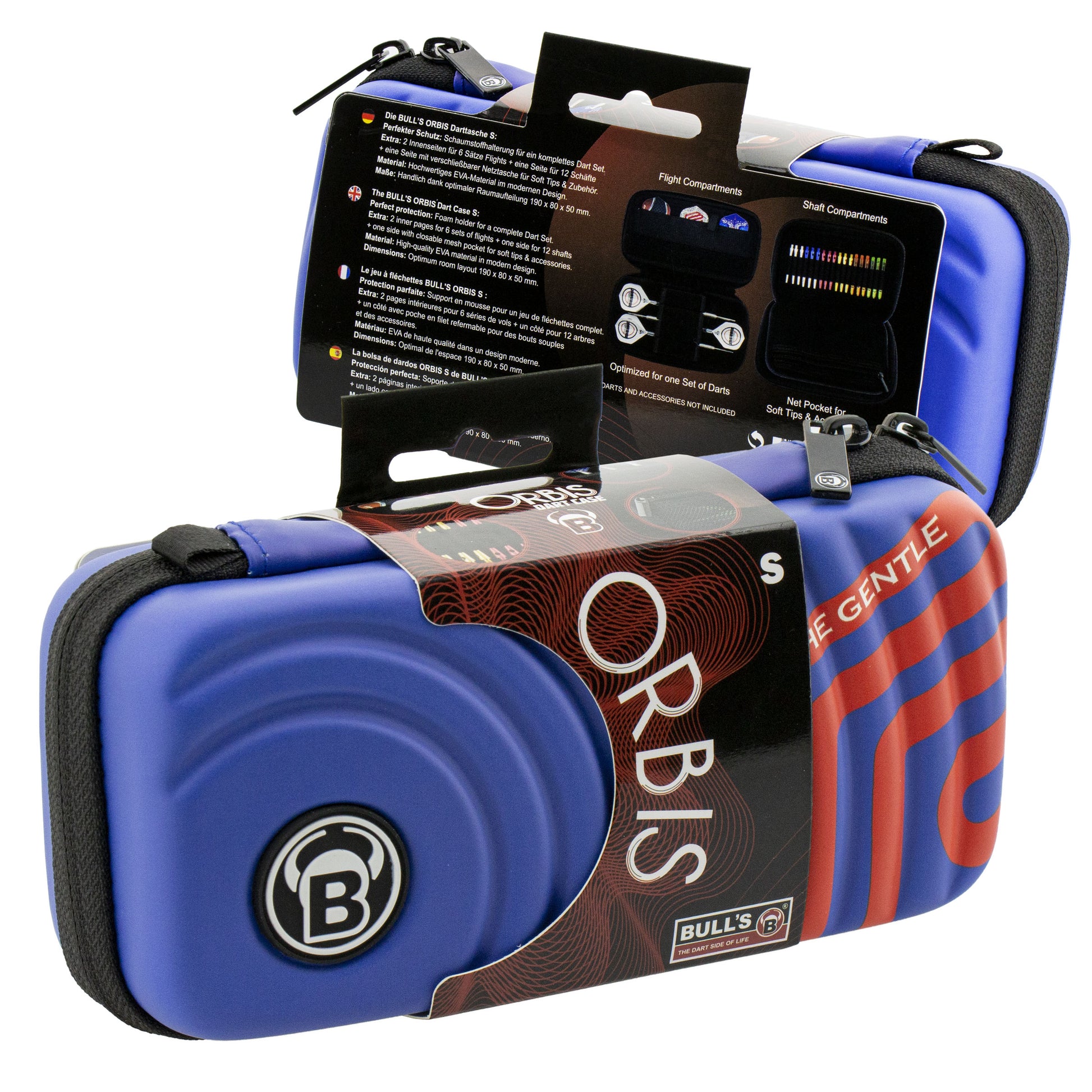 Die neuen BULL'S Dartcases sind da. Orbis steht für die neuste Generation der Hardcases. Bei der Entwicklung des Cases wurde der Fokus auf die Wünsche der Dartspieler gelegt. Die Orbis S Variante bietet aufgrund der Schaumstoffhalterung einen perfekten Halt & Schutz für ein komplettes Dart Set. Zusätzlich befinden sich zwei Extraseiten im Case, die Platz für 6 Sätze Flights und 12 Schäfte bieten. Eine praktische Netztasche mit Reißverschluss für Soft Tips & Zubehör ist ebenfalls integriert. Das Dartcase überzeugt dank hochwertigem und robustem EVA-Material sowie des modernen Designs mit BULL'S Logo. Punkten kann das Orbis zudem dank der Handlichkeit und der Raumaufteilung. Die Flights können auf dem Dart stecken bleiben ohne zu verknicken. Der Reißverschluss des Orbis ist verdeckt und leichtläufig. Das Orbis S wurde in den Farben schwarz, blau, mint, rot sowie in einer speziellen Mensur Suljovic Edition designed. Im Lieferumfang enthalten sind zusätzlich ein Karabinerhaken sowie eine Handschlaufe, die am Case befestigt werden können. Maße: 190 x 80 x 50 mm. Für diejenigen, die etwas mehr Platz benötigen, wurde das Dartcase in der Version Orbis XL entwickelt, in der zwei komplette Dart Sets Platz finden. Release Date: 13.03.2020 |