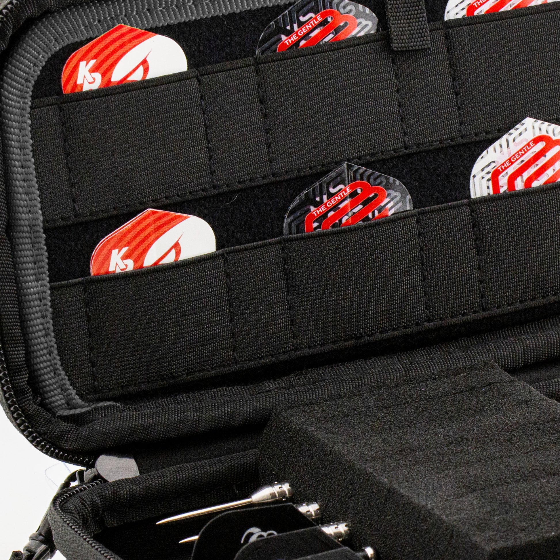 Nach den beliebten ersten beiden limited Editionen, ist jetzt die dritte limitierte Auflage des BULL'S Orbis da. Das einzigartige Eagle-Camouflage-Design des Cases in hochwertigem EVA-Material ist erhältlich in S und XL. Die Größe XL misst 190 x 110 x 50 mm und beinhaltet eine Schaumstoffhalterung für zwei komplette Dart-Sets, sowie zwei Innenseiten für 12 Sätze Flights. Eine Seite besitzt Halterungen für 15 Schäfte und auf der anderen Seite befindet sich eine verschließbare Netztasche für Soft-Tips & Zubehör. |