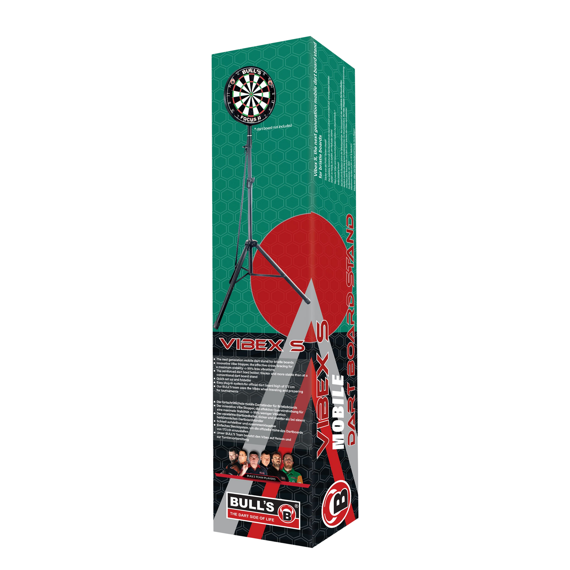 Wenn es um einen hochwertigen Dartboardständer geht, gibt es keine bessere Wahl als den Vibex Mobile Dartstand von BULL'S. Unsere Pro Spieler bezeichnen Ihn als stabilsten Dartständer aller Zeiten. Er ist komplett aus Stahl gefertigt. Das Vibex verfügt zudem über einen Schwingungs-Stopper, eine innovative Querverstrebung zwischen Stativ und Teleskopstange. Dank dieser zusätzlichen Stabilisierung werden Vibrationen um bis zu 95 % reduziert. Zusätzliche Vibrationsminimierung erfährt das Vibex dank des stabilen 4-Kant-Rohrs am oberen Teil des Ständers. Der stabilste Dartständer, den wir je gebaut haben, wird durch ein hochwertiges Dreibein mit rutschfesten Gummifüßen abgerundet. Das Vibex lässt sich schnell auf- und abbauen und durch das einfache Stecksystem einfach auf die offizielle Höhe des Dartboards einstellen. Außerdem ist die Verpackungsgröße auf 19 cm x 12,6 cm x 89,6 cm minimiert worden, wodurch es leicht zu transportieren ist. Das Vibex S ist speziell nur für Steel-Dartboards, während beim Vibex H noch eine neu entwickelte Halterung für ein elektronisches Dartboard inkludiert ist. |