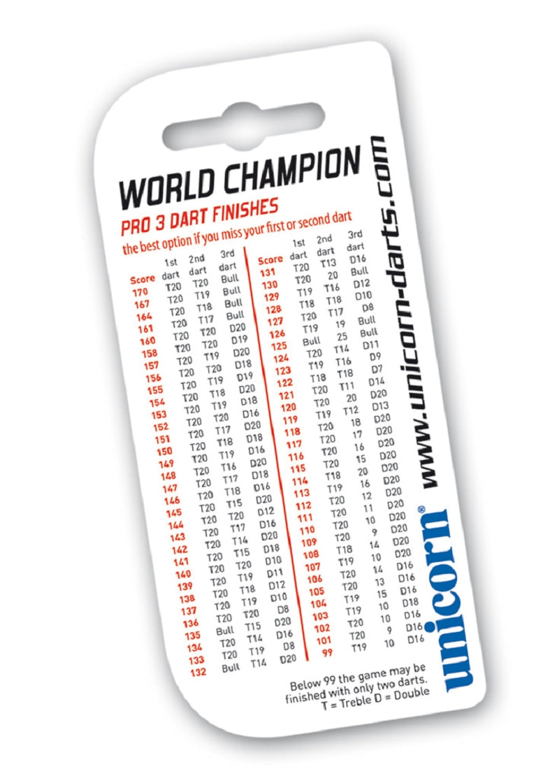 Unicorn Checkout Pocket Karte, eine Doppelseitige handliche Karte mit besten Hinweisen und Tipps für den optimalen Checkout eines Legs. |