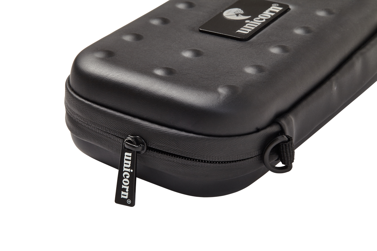 Unicorn Contender Hard Case ist eine kompakte und robuste Darttasche für einen rundum Schutz des Dart-Equipments. Die Darts können im kompletten Setup transportiert werden. Viele extra konzipierte, separate Fächer für Flights, Schäfte, Tips und Zubehör. Es kann unter anderem ein voll bestücktes Dart Set auf passende Halterungen gesteckt werden. Die Tasche bietet zusätzlich eine herausnehmbare Tasche mit Reißverschluss für Zubehör sowie den einzigartigen Unicorn pocket Dart Caddy. Der Reißverschluss ist verdeckt, dadurch wird die Tasche auch optisch zu einem Highlight. |
