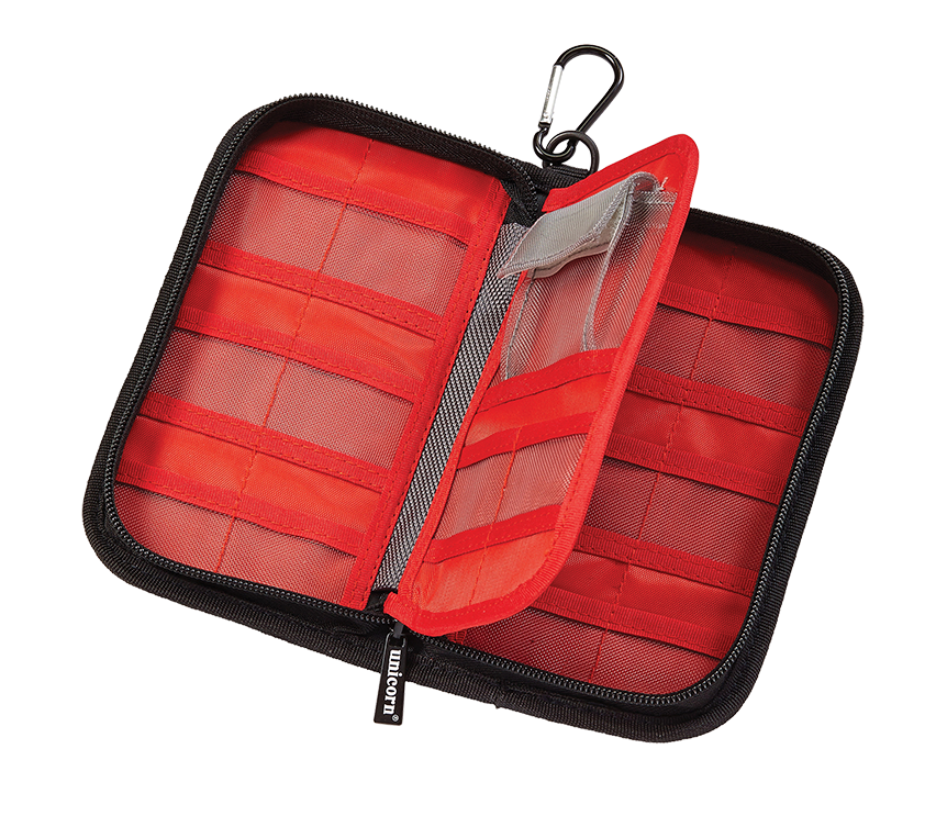 Unicorn ICON-Case ist eine neue Entwicklung im Dartbereich. Modernes ergonomisches Design mit einer Soft-Feel-Abdeckung. Die Abdeckung verschliesst das Case magnetisch. Integriertes Flightfach und entnehmbare Plastik Dartaufnahme. |