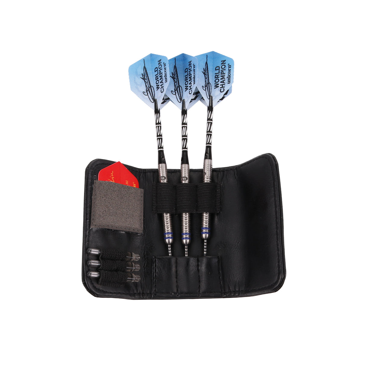 Der Unicorn Mini Dartsack mit magnetischem Verschluss bietet Platz für einen Satz Darts und zahlreichem Zubehör. |