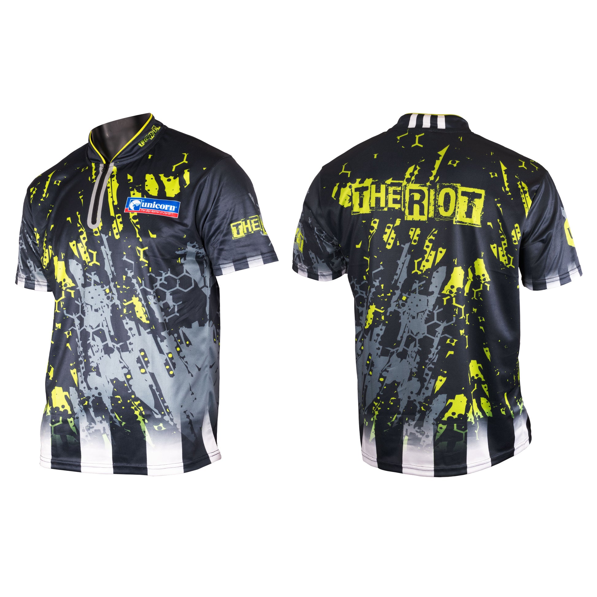 Das original Unicorn Dart Shirt von Callan "The Riot" Rydz wird aus atmungsaktivem leichtem Micro Tuk 3 Polyester Material hergestellt. Das Shirt ist von S bis 4-XL lieferbar. |